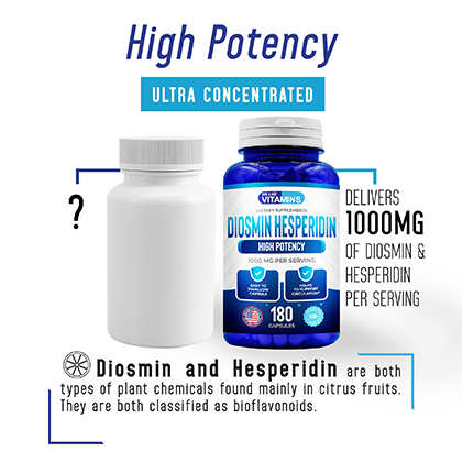 Diosmin & Hesperidin are both types of plant chemicals found mainly in citrus fruits. They are both classified as bioflavonoids. *